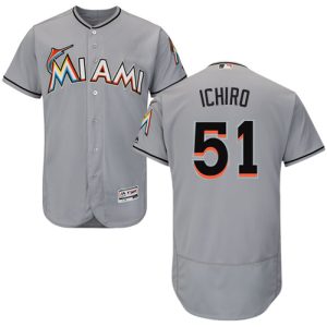 Authentic MLB marlins #51 Ichiro Suzuki Grey Flexbase Authentic Collection Stitched MLB Jersey