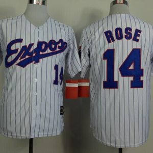Authentic MLB Mitchell And Ness 1982 Expos #14 Pete Rose White(Black Strip) Throwback Stitched MLB Jersey