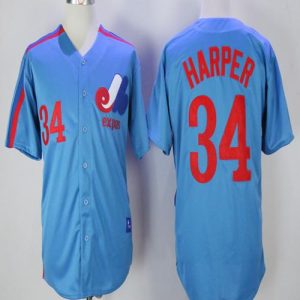 Authentic MLB Mitchell And Ness Expos #34 Bryce Harper Blue Throwback Stitched MLB Jersey