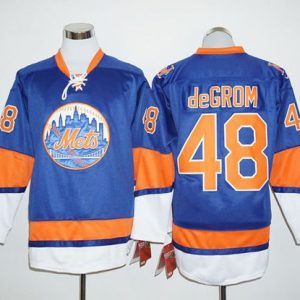 Authentic MLB Mets #48 Jacob DeGrom Blue Team Logo Fashion Stitched MLB Jersey