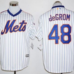 Authentic MLB Mets #48 Jacob DeGrom White(Blue Strip) Cool Base Cooperstown 25TH Stitched MLB Jersey