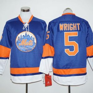 Authentic MLB Mets #5 David Wright Blue Team Logo Fashion Stitched MLB Jersey