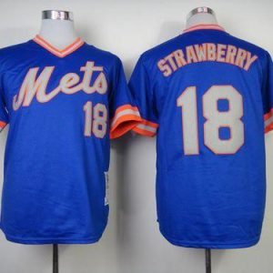 Authentic MLB Mitchell and Ness 1983 Mets #18 Darryl Strawberry Blue Throwback Stitched MLB Jersey