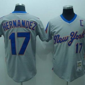 Authentic MLB Mitchell and Ness Mets #17 Keith Hernandez Stitched Grey Throwback MLB Jersey