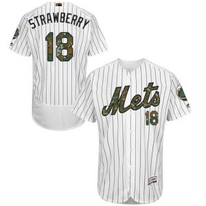 Authentic MLB Mets #18 Darryl Strawberry White(Blue Strip) Flexbase Authentic Collection Memorial Day Stitched MLB Jersey