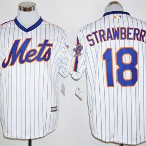 Authentic MLB Mets #18 Darryl Strawberry White(Blue Strip) Flexbase Authentic Collection Father’s Day Stitched MLB Jersey