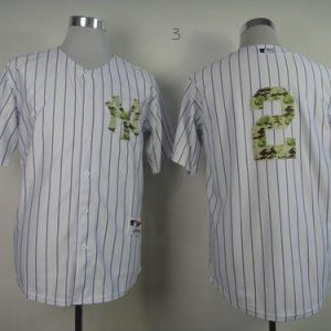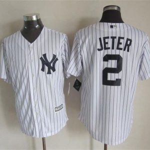 Authentic MLB Yankees #2 Derek Jeter White Strip New Cool Base Mother’s Day Stitched MLB Jersey