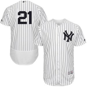 Authentic MLB Yankees #21 Paul O’Neill White Strip Flexbase Authentic Collection Stitched MLB Jersey