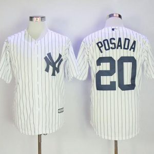 Authentic MLB Yankees #20 Jorge Posada White Strip Flexbase Authentic Collection Stitched MLB Jersey
