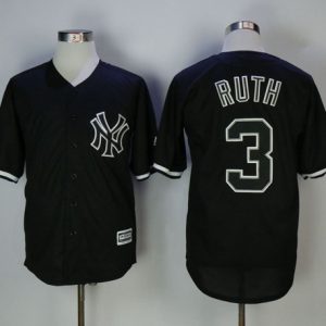 Authentic MLB Yankees #3 Babe Ruth Black Fashion Stitched MLB Jersey