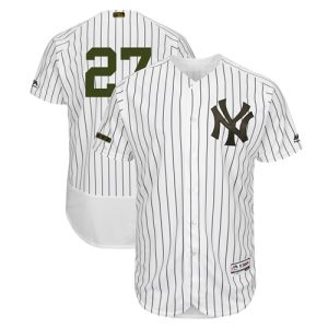 Authentic MLB Yankees #27 Giancarlo Stanton White Strip Flexbase Authentic Collection 2018 Memorial Day Stitched MLB Jersey
