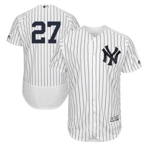Authentic MLB Yankees #27 Giancarlo Stanton White Strip Flexbase Authentic Collection Stitched MLB Jersey