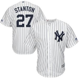 Authentic MLB Yankees #27 Giancarlo Stanton White Strip New Cool Base Stitched MLB Jersey