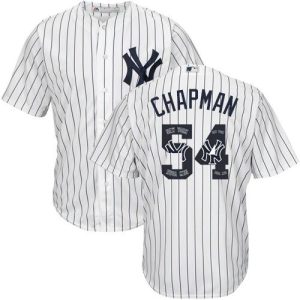 Authentic MLB Yankees #54 Aroldis Chapman White Strip New Cool Base Stitched MLB Jersey