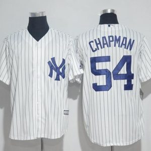 Authentic MLB Yankees #54 Aroldis Chapman White Strip Team Logo Fashion Stitched MLB Jersey