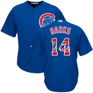 Authentic MLB Cubs #14 Ernie Banks Blue Team Logo Fashion Stitched MLB Jersey
