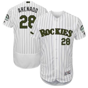 Authentic MLB Rockies #28 Nolan Arenado White Strip Flexbase Authentic Collection 2018 Memorial Day Stitched MLB Jersey