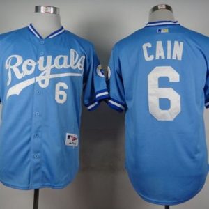 Authentic MLB Royals #6 Lorenzo Cain Light Blue 1985 Turn Back The Clock Stitched MLB Jersey