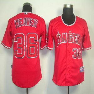 Authentic MLB Angels of Anaheim #36 Weaver Jered Red Cool Base Stitched MLB Jersey