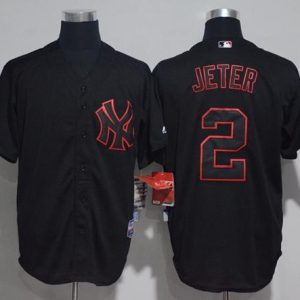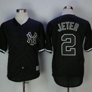 Authentic MLB Yankees #2 Derek Jeter Black Fashion Stitched MLB Jersey