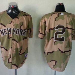 Authentic MLB Yankees #2 Derek Jeter Camo Commemorative Military Day Cool Base Stitched MLB Jersey