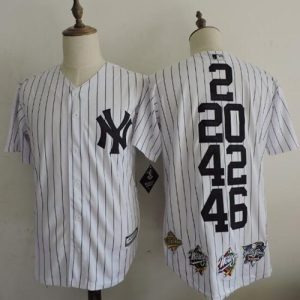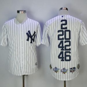 Authentic MLB Yankees #2 #20 #42 #46 White Strip World Series Champions Stitched Jersey