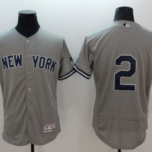 Authentic MLB Yankees #2 Derek Jeter Grey Flexbase Authentic Collection Stitched MLB Jersey