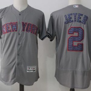 Authentic MLB Yankees #2 Derek Jeter Grey Fashion Stars & Stripes Flexbase Authentic Stitched MLB Jersey