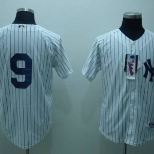 Authentic MLB Yankees #9 Roger Maris White Strip Team Logo Fashion Stitched MLB Jersey