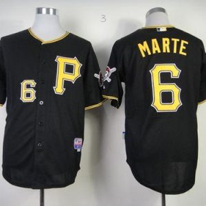 Authentic MLB Pirates #6 Starling Marte Black Team Logo Fashion Stitched MLB Jersey