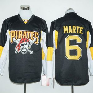 Authentic MLB Pirates #6 Starling Marte Black Long Sleeve Stitched MLB Jersey