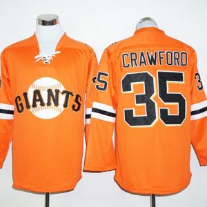 Authentic MLB Giants #35 Brandon Crawford Orange Long Sleeve Stitched MLB Jersey