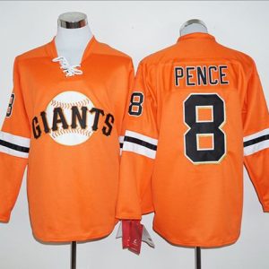 Authentic MLB Giants #8 Hunter Pence Orange Long Sleeve Stitched MLB Jersey