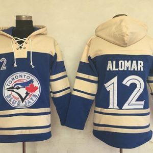 Authentic MLB Blue Jays #12 Roberto Alomar Blue Sawyer Hooded Sweatshirt MLB Hoodie