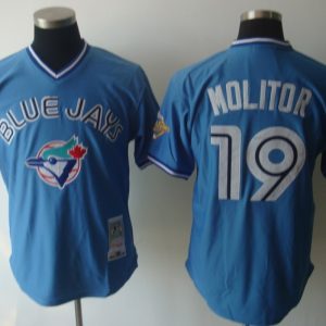 Authentic MLB Mitchell And Ness Blue Jays #19 Paul Molitor Blue Stitched MLB Jersey