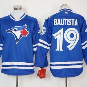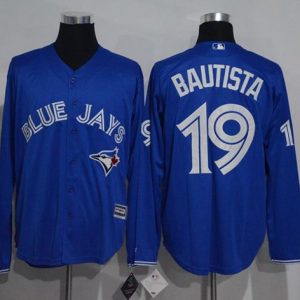 Authentic MLB Blue Jays #19 Jose Bautista Blue Long Sleeve Stitched MLB Jersey