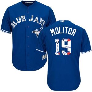 Authentic MLB Blue Jays #19 Paul Molitor Blue Team Logo Fashion Stitched MLB Jersey