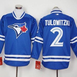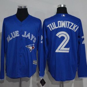 Authentic MLB Blue Jays #2 Troy Tulowitzki Blue Long Sleeve Stitched MLB Jersey