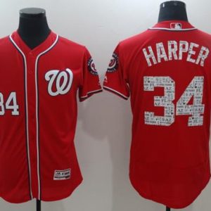Authentic MLB Nationals #34 Bryce Harper Red Fashion Stars & Stripes Flexbase Authentic Stitched MLB Jersey