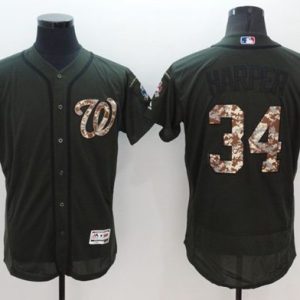 Authentic MLB Nationals #34 Bryce Harper Green Flexbase Authentic Collection Salute to Service Stitched MLB Jersey