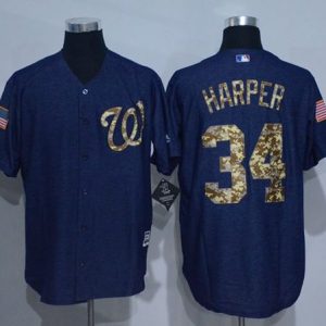 Authentic MLB Nationals #34 Bryce Harper Denim Blue Salute to Service Stitched MLB Jersey