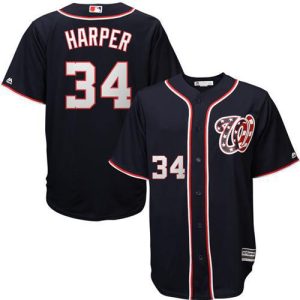 Authentic MLB Nationals #34 Bryce Harper Navy Blue Team Logo Fashion Stitched MLB Jersey