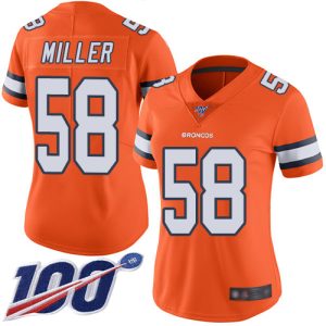NFL Women’s Denver Broncos #58 Von Miller Orange Stitched Limited Rush 100th Season Jersey