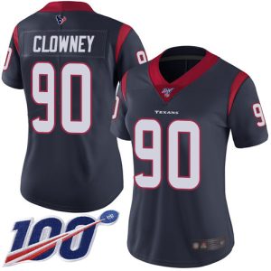 NFL Women’s Houston Texans #90 Jadeveon Clowney Navy Blue Team Color Stitched 100th Season Vapor Limited Jersey