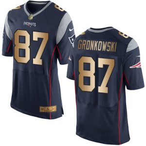 Wholesale NFL New England Patriots #87 Rob Gronkowski Navy Blue Team Color Men’s Stitched New Elite Gold Jersey
