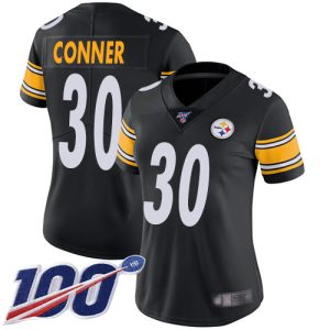 NFL Women’s Pittsburgh Steelers #30 James Conner Black Team Color Stitched 100th Season Vapor Limited Jersey