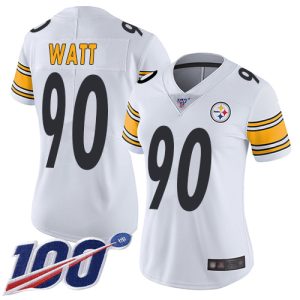 NFL Women’s Pittsburgh Steelers #90 T. J. Watt White Stitched 100th Season Vapor Limited Jersey
