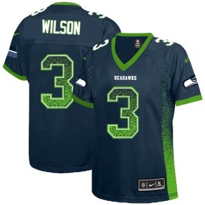 NFL Women’s Seattle Seahawks #3 Russell Wilson Steel Blue Team Color Stitched Elite Drift Fashion Jersey