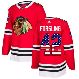NHL Hockey Adidas Blackhawks #42 Gustav Forsling Red Home Authentic USA Flag Stitched NHL Jersey