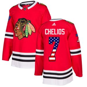 NHL Hockey Adidas Blackhawks #7 Chris Chelios Red Home Authentic USA Flag Stitched NHL Jersey